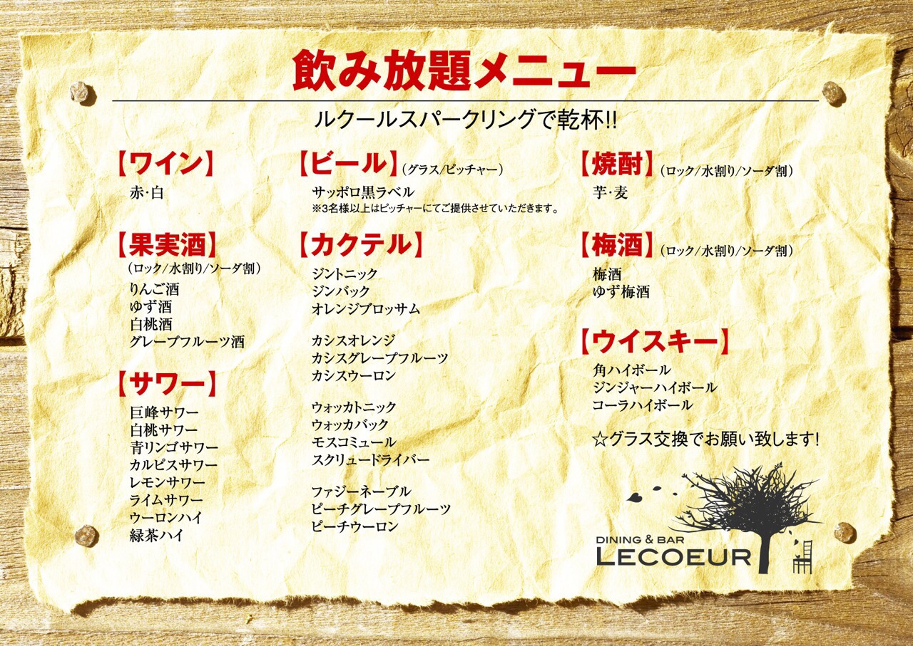 ルクールは愛知県小牧市にあるディナーを楽しめる和食バルです。飲み放題1500円。居酒屋としても楽しめます。